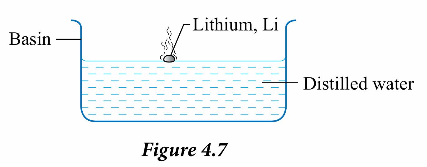 2. Put the piece of lithium slowly into a basin filled with water as shown in Figure 4.7.