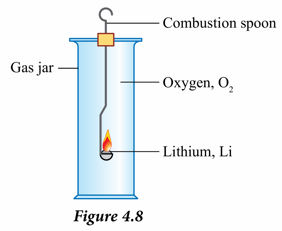 3. Heat until it starts to burn and immediately insert the spoon into a gas jar filled with chlorine gas as shown in Figure 4.8.