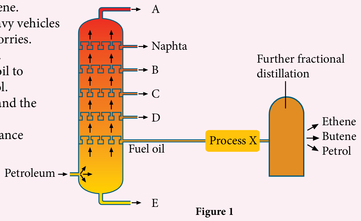 Figure 1 shows the products of petroleum fractional distillation at the oil refinery.
