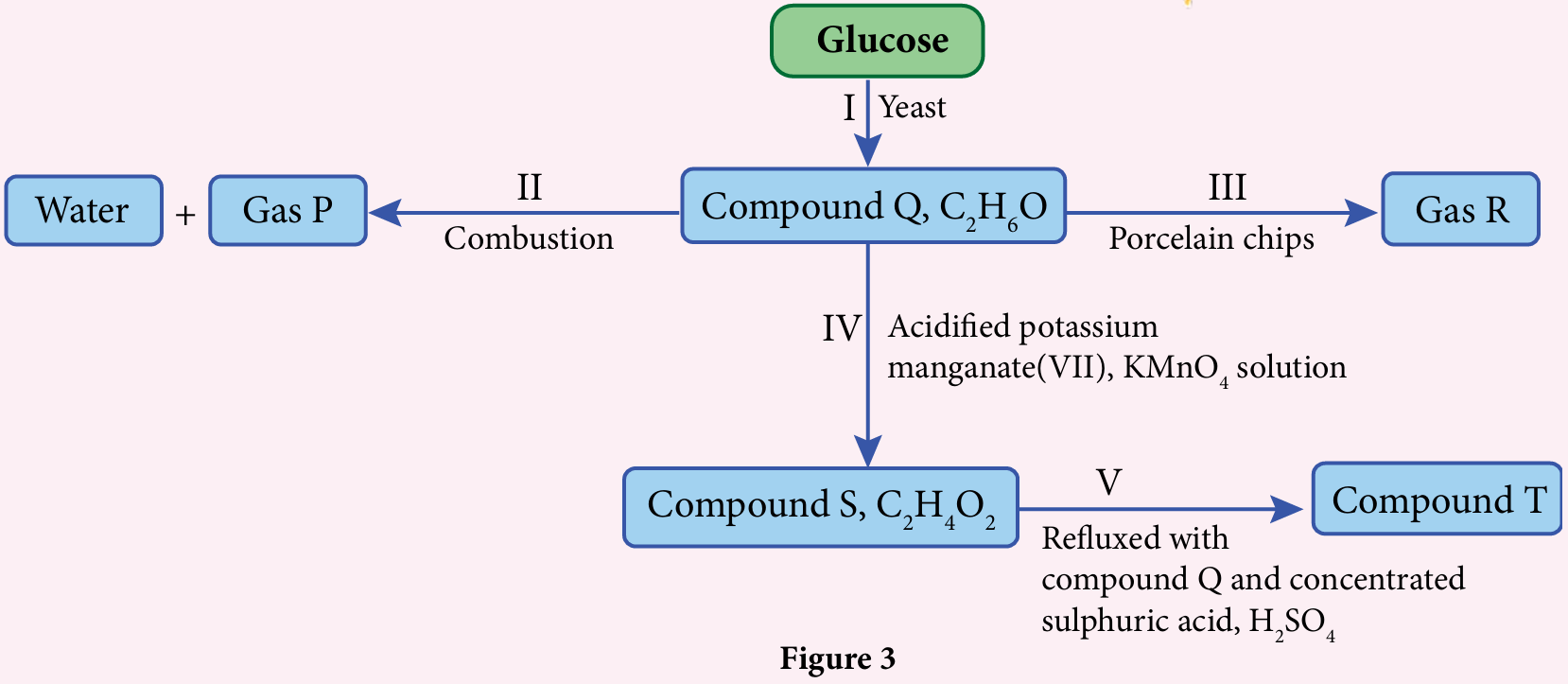Figure 3 shows a series of reactions involving compound Q, C2H6O.