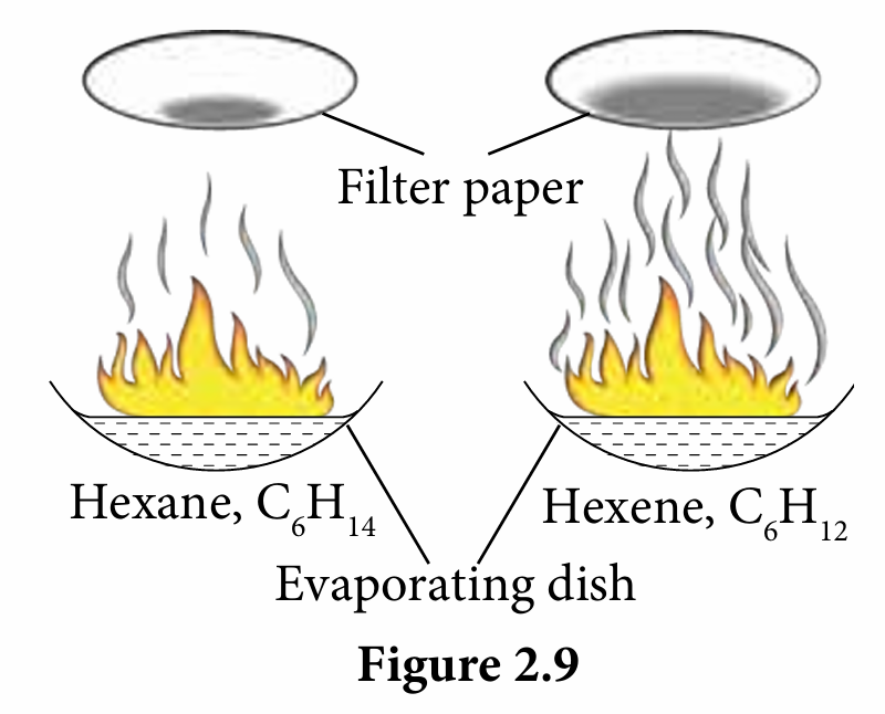 Materials: Hexane, C6H14, hexene, C6H12, wooden splinter, matches and filter paper.