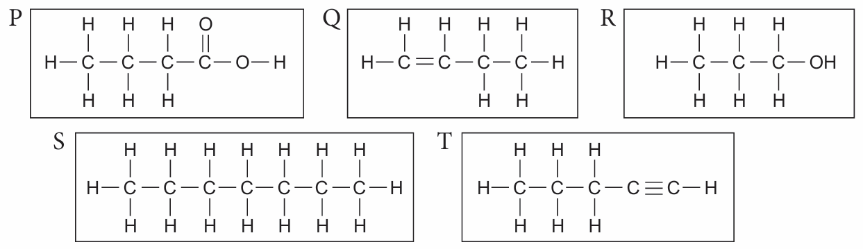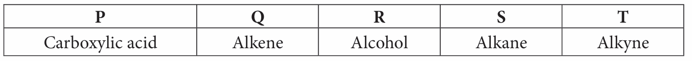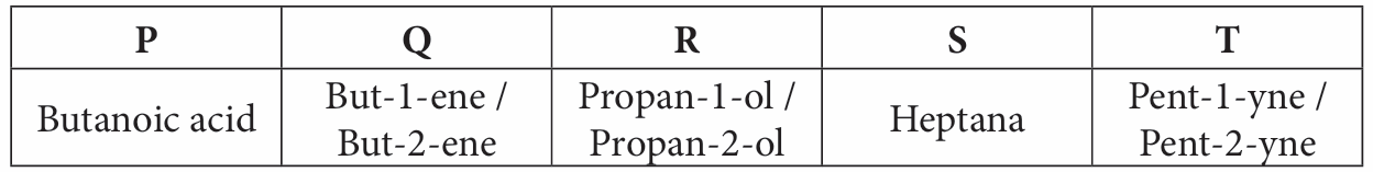 Table 2.13 shows the molecular formula of organic compounds P, Q, R, S and T from different homologous series.