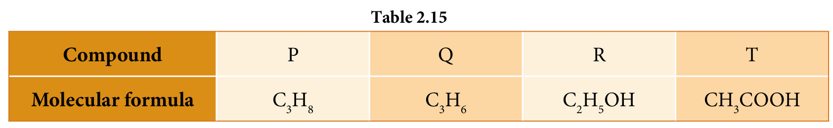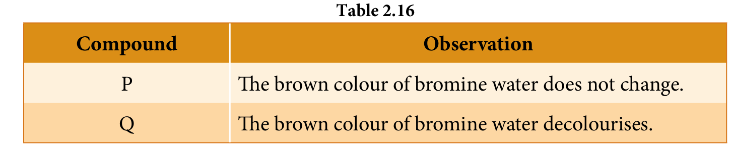 (ii) Table 2.16 shows the result of an experiment where compound P and compound Q were separately shaken in bromine water in test tubes.