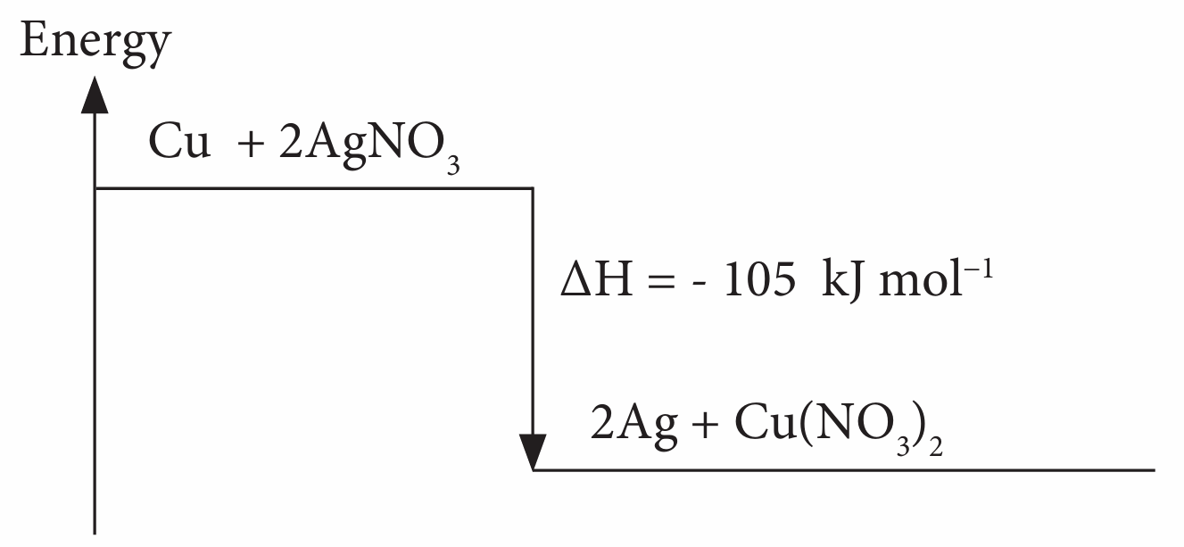 (a) $$ \mathrm{Cu}+2 \mathrm{AgNO}_3 \rightarrow 2 \mathrm{Ag}+\mathrm{Cu}\left(\mathrm{NO}_3\right)_2 \quad \Delta \mathrm{H}=-105 \mathrm{~kJ} \mathrm{~mol}^{-1} $$